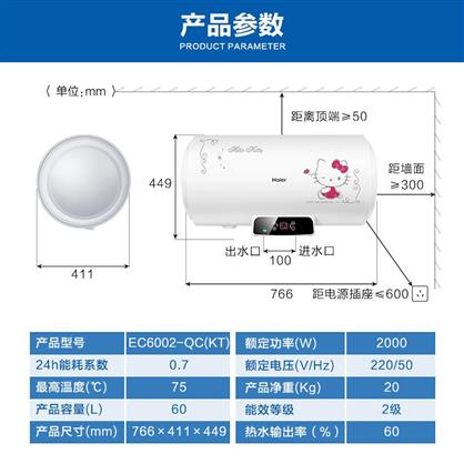 主體品牌海爾(Haier)型號(hào)EC6002-QC(KT)電熱水器規(guī)格款式橫式(電)控制方式微電腦式類別儲(chǔ)水式最大容積(L)60升加熱方式金屬管加熱能效等級(jí)2級(jí)加熱功率(W)2000瓦特內(nèi)膽材質(zhì)金剛?cè)龑幽懠訜狍w材質(zhì)不銹鋼防水等級(jí)IPX4電壓/頻率(V/HZ)220伏特產(chǎn)品尺寸(mm)766x411x449毫米產(chǎn)品重量(kg)20千克規(guī)格參數(shù)水溫調(diào)節(jié)支持峰谷節(jié)能不支持預(yù)約功能支持生產(chǎn)企業(yè)青島經(jīng)濟(jì)技術(shù)開發(fā)區(qū)海爾熱水器有限公司認(rèn)證委托人青島經(jīng)濟(jì)技術(shù)開發(fā)區(qū)海爾熱水器有限公司生產(chǎn)者青島經(jīng)濟(jì)技術(shù)開發(fā)區(qū)海爾熱水器有限公司商品名稱海爾電熱水器EC6002-QC(KT)熱水器類型電熱水器上市時(shí)間2016.12功率2000瓦特外形尺寸766x411x449毫米額定電壓220伏特凈重20千克容積60升產(chǎn)品功率1501-2000w適用人數(shù)2-3人是否可浴室安裝是操作方式按鍵式