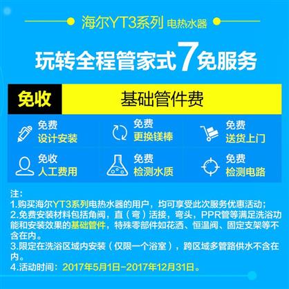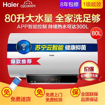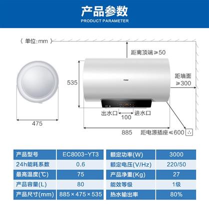 主體品牌海爾(Haier)型號(hào)EC8003-YT3電熱水器規(guī)格款式橫式(電)控制方式微電腦式類別儲(chǔ)水式加熱方式金屬管加熱能效等級(jí)1級(jí)內(nèi)膽材質(zhì)金剛?cè)龑幽懠訜狍w材質(zhì)不銹鋼防水等級(jí)IPX4規(guī)格參數(shù)水溫調(diào)節(jié)支持峰谷節(jié)能不支持預(yù)約功能支持蘇寧云居是生產(chǎn)企業(yè)名稱青島經(jīng)濟(jì)技術(shù)開發(fā)區(qū)海爾熱水器有限公司認(rèn)證委托人中國(guó)質(zhì)量認(rèn)證中心生產(chǎn)者膠南工廠商品名稱海爾電熱水器EC8003-YT3熱水器類型電熱水器上市時(shí)間2017年4月功率3000瓦特外形尺寸885*475*535毫米額定電壓220伏特凈重29千克容積80升適用人數(shù)3-4人是否可浴室安裝是操作方式遙控式
